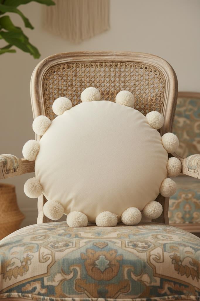 Bej Ponponlu Yuvarlak Kırlent Kılıfı (pillow0904-43x43)