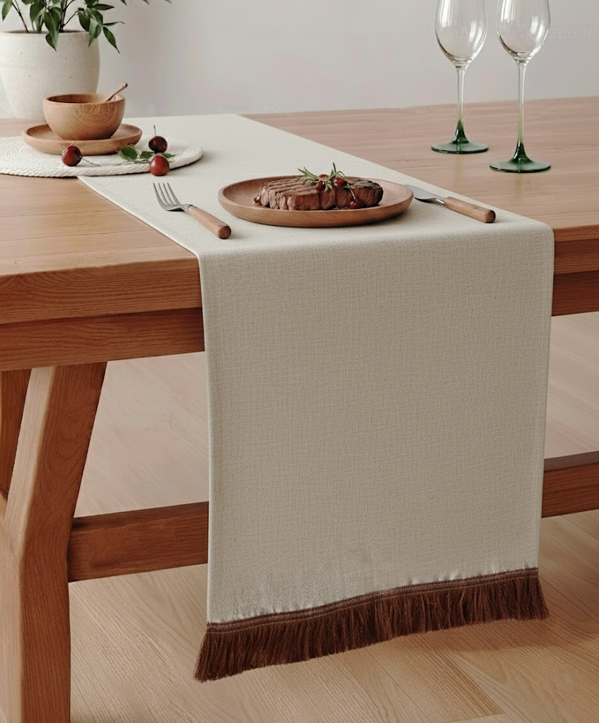 Lite Kahverengi Saçak Detaylı  Runner 50x140