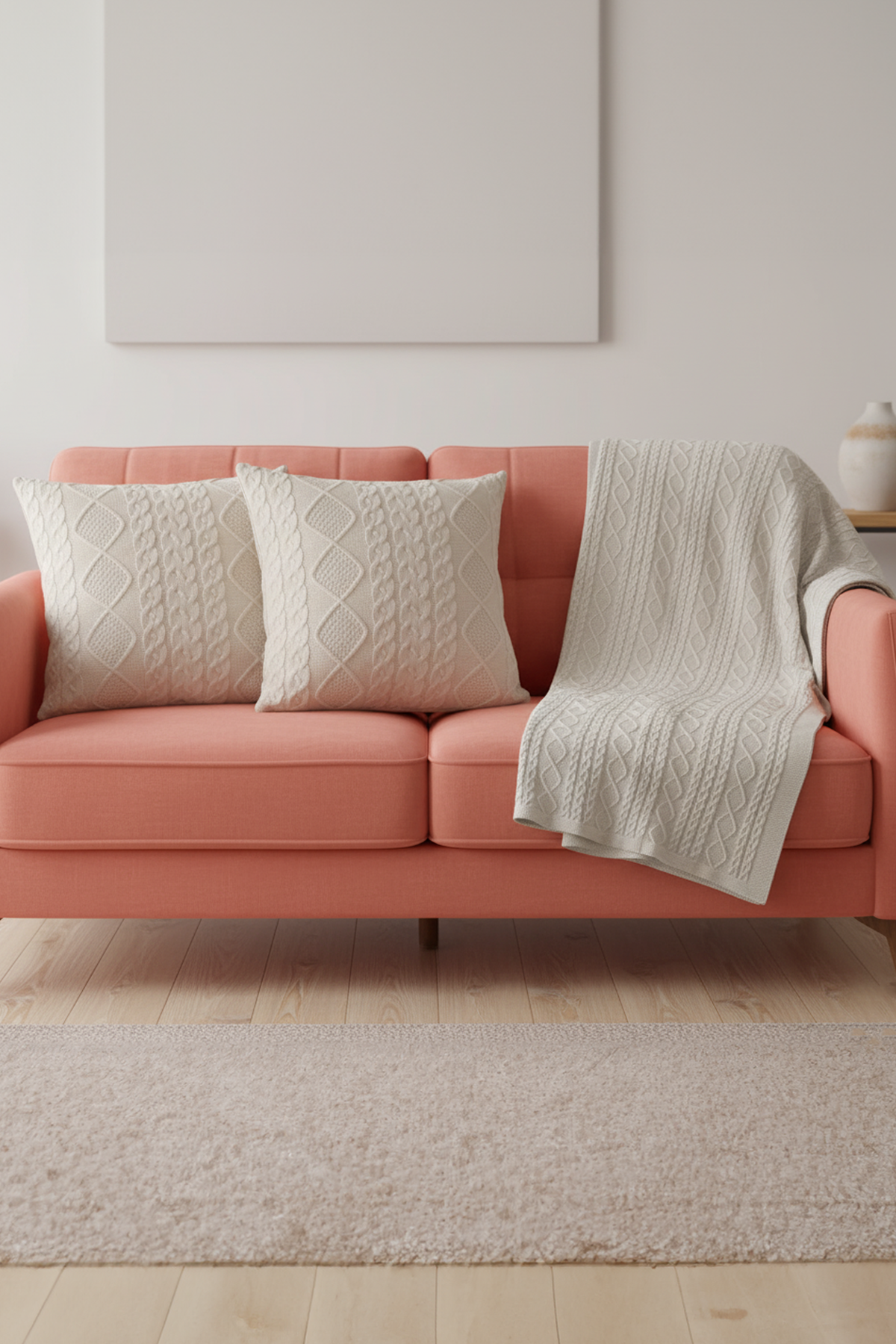 Özellikler: Yumuşacık triko dokusu sayesinde soğuk akşamlarda sıcacık tutar. Örgü desenli modern tasarımıyla hem klasik hem de çağdaş dekorasyonlara uyum sağlar.