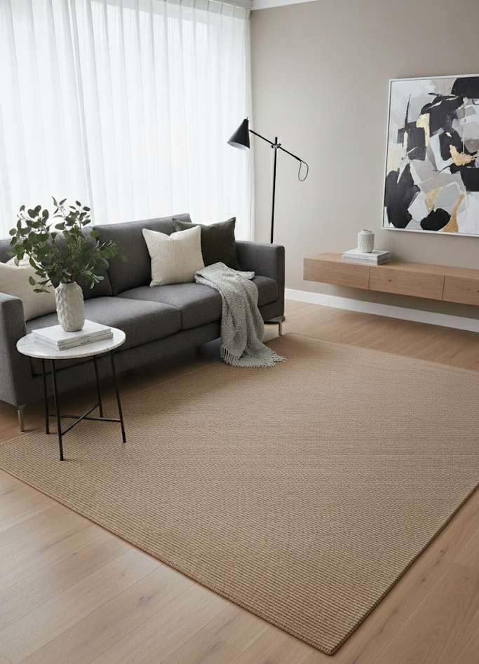 Doğal Tonlu Jüt Görünümlü Sisal Halı – Minimalist ve Dayanıklı