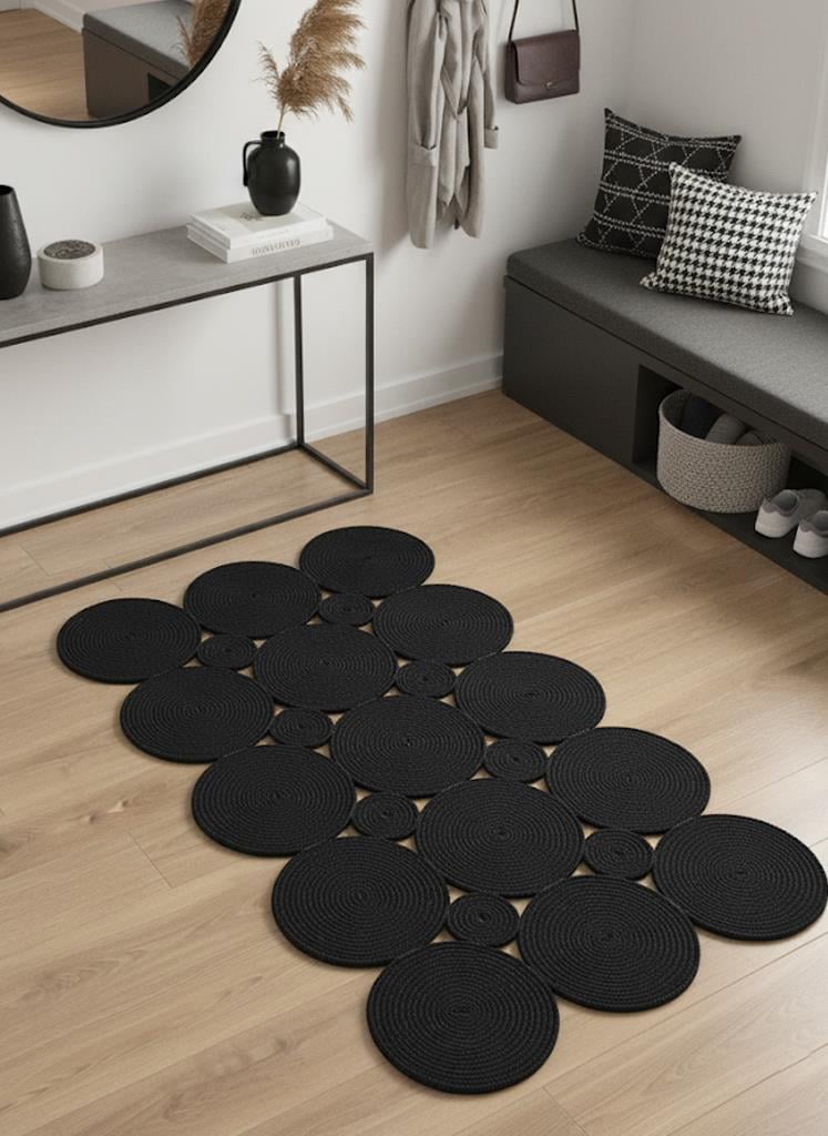 Nomad 027 Siyah El Dokuma Naturel Hasır Örgü Jüt HalıMarkaev