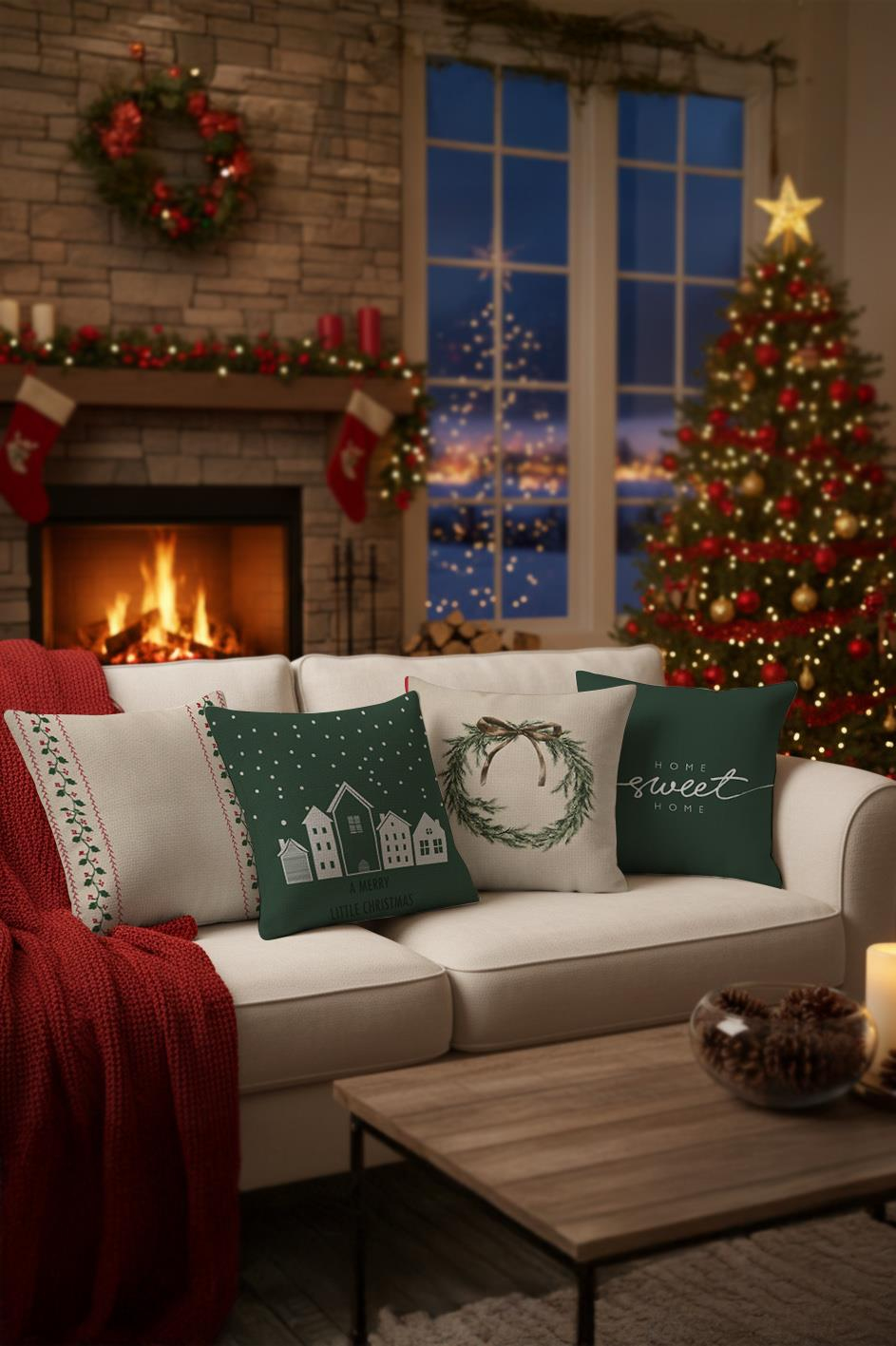 Yılbaşı Christmas Temalı 4'lü Kırlent Kılıfı 1042Markaev
